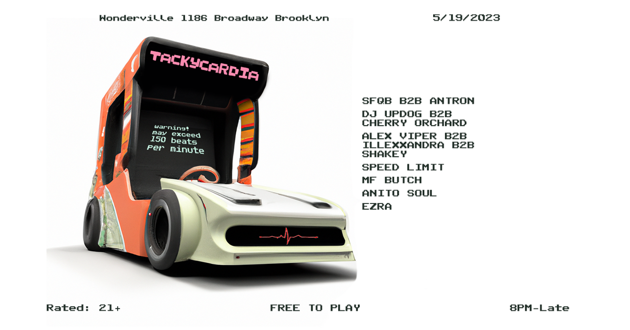 Anything goes as long as it’s over 150 beats per minute at Tackycardia. You’ll hear anything from trance to jungle, high-speed techno to footwork, hardcore to rave, and more!