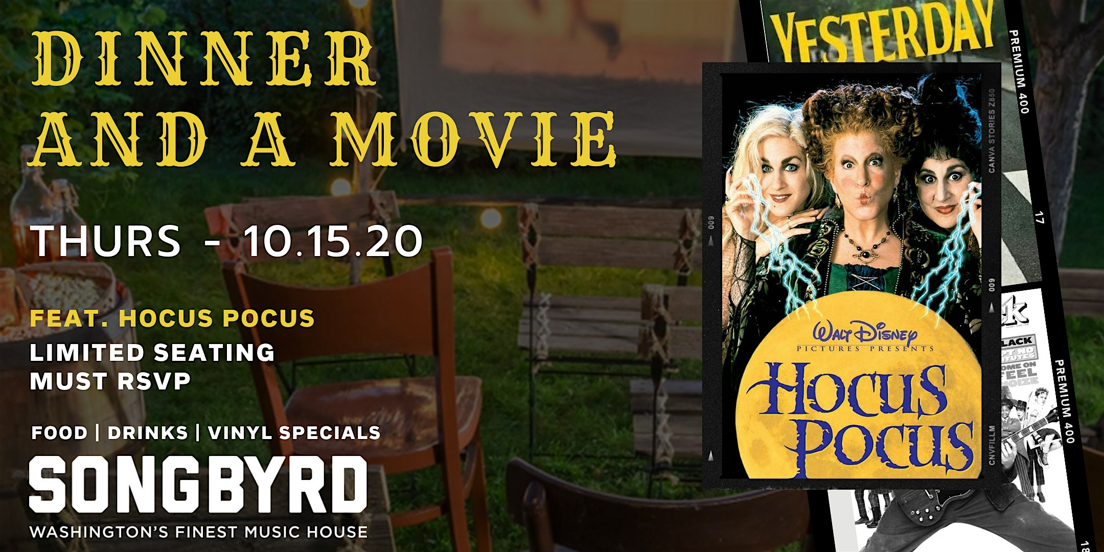 Join us for Dinner and a Movie in our outdoor Streetary!