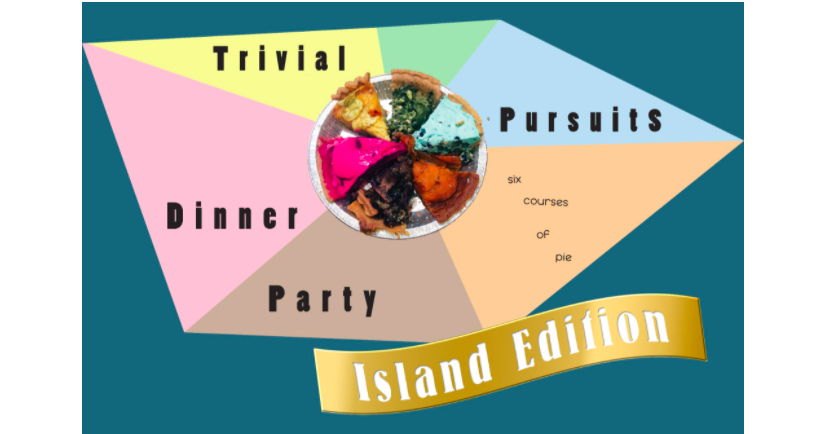 Trivial Pursuits Dinner Party: Island Edition is a food-based performance and interactive dinner party. Led by our panel of experts, 36 dinner guests will be served 6 courses of pie and participate in a series of activities.