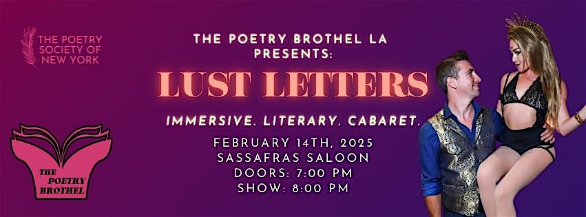 Step into the sultry embrace of The Poetry Brothel LA: "Lust Letters", a Valentine's Day immersive experience where every stanza drips with desire and every verse teases temptation. Join us on Friday, February 14th at the sinful Sassafras Saloon, where love letters transform into lustful liaisons and sonnets sway between smitten and sinful.