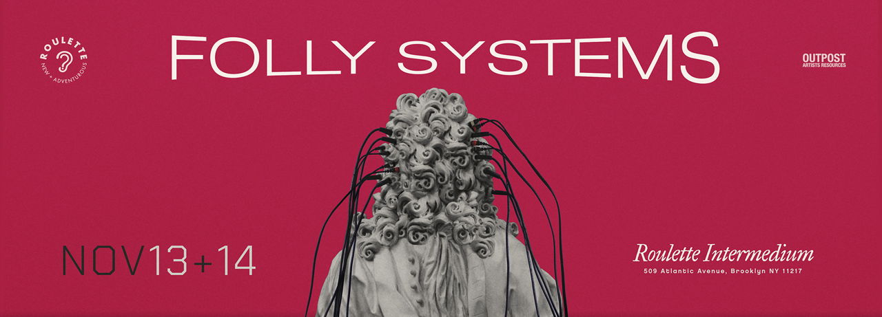 Co-presented by Outpost Artists Resources and Roulette Intermedium, Folly Systems comes to Brooklyn as a two-night festival featuring the work of a wide group of artists working in the intersection of performance and media art. Using media and technologies not as an end in themselves but as non-neutral creative strategies, the works in the program utilize tools that range from VR, custom projectors, wooden artisanal instruments, communication media and DIY video interfaces among others. What is the difference between a spoon and virtual reality? Is one more technological than the other? Despite differences in materials and technical complexity, the same creative gesture is made across media over and over again as if we were endlessly rediscovering the wheel. Curated by Cecilia Lopez.