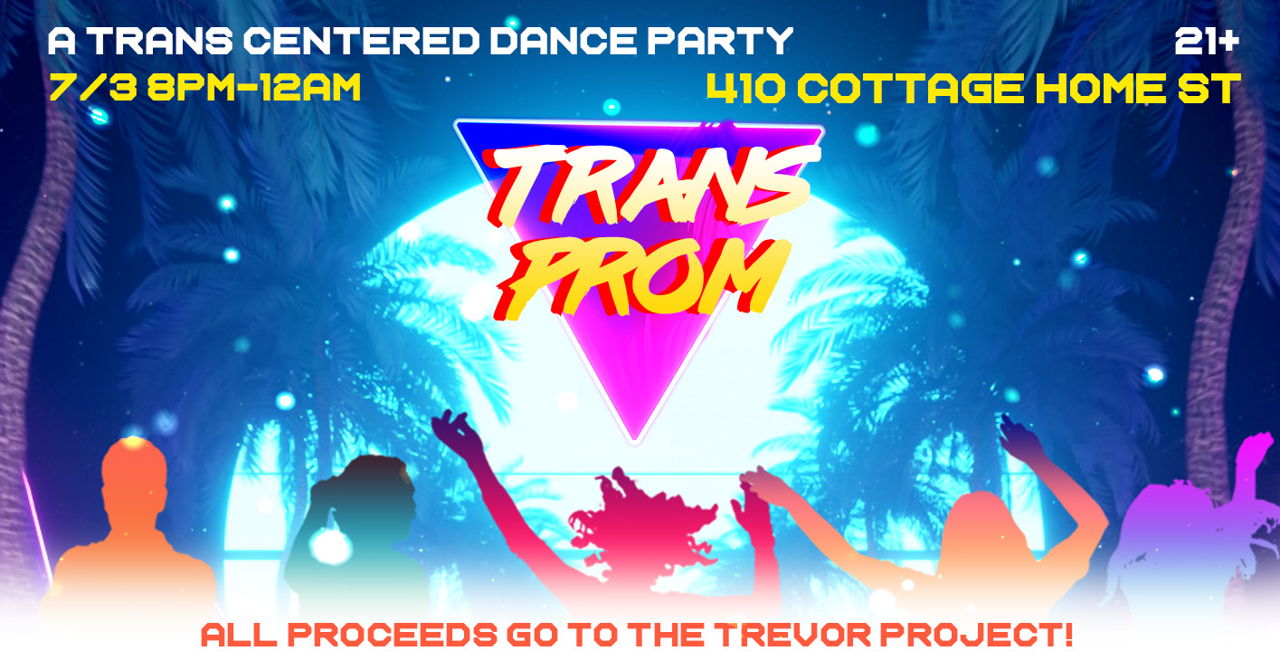 Time to pull out your best looks. It’s prom night! Join us for a trans centered queer dance night at HRLA on July 3rd, from 8pm-midnight. From your black tie, to your blue jeans, or even that puffy dress you haven’t time to wear, we want to see you dress for the queer prom of your dreams. There will be dancing, drinks, photobooth, and a themed costume competition where we will be crowning our “Prom Deities”. All profits for this event will go to the Trevor Project!