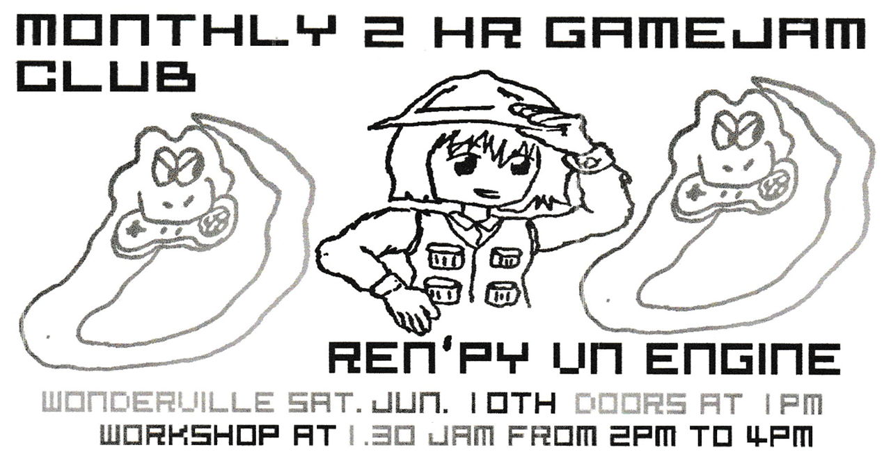 The second month, we will be making narrative games with Ren'Py. based on a random suggestion we will get from Wikipedia.
