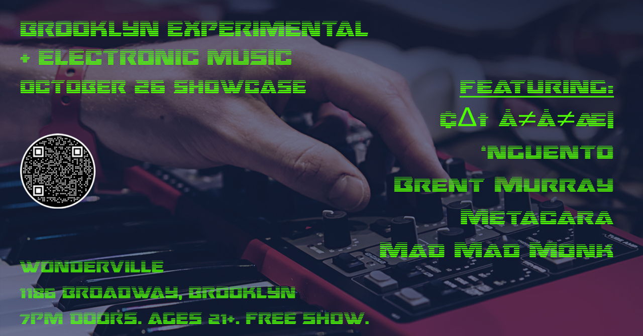 Join Wonderville's electronic music community for our showcase featuring an eclectic mix of New York City's artists, showcasing a variety of styles and genres. This month we're featuring ¢∆† å≠å≠æ|, Nguento, Brent Murray, Metacara, and Mad Mad Monk! This edition organized by Metamyther.