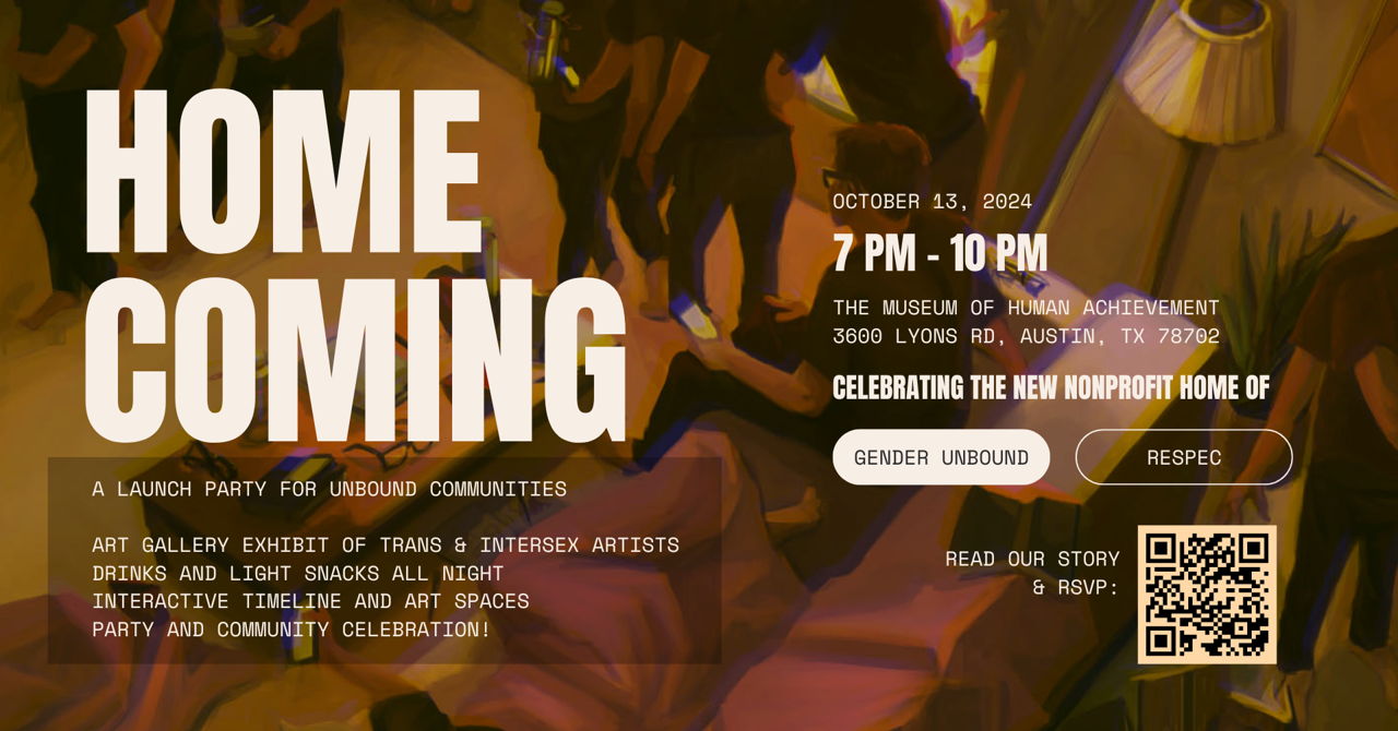Unbound Communities is the new nonprofit home of Gender Unbound and ReSpec! We’ve officially received our 501(c)3 tax-exempt status. We want to take a night to celebrate this milestone, and you’re invited!