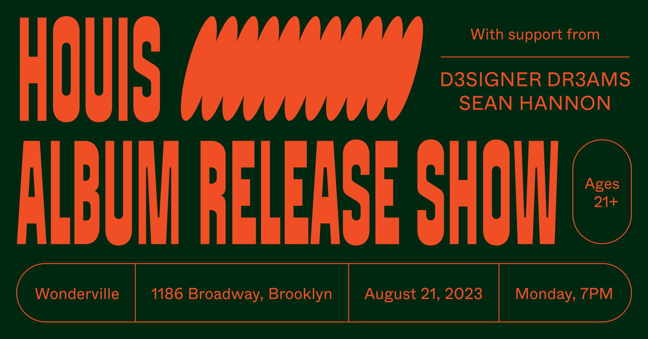 Release show for Houis' debut album, "Outgrown", with support from Sean Hannon and D3SIGNER.DR3AMS.