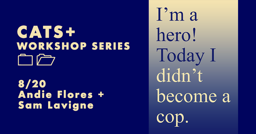 In this workshop, artists Andie Flores and Sam Lavigne will discuss the process behind their recent work "The APD Decruiting Initiative", a multimedia public service campaign that aims to prevent potential recruits from joining the Austin Police Department, and to convince existing police officers to quit their jobs. After the talk, the artists will lead participants in a telethon to support the project's reward card program. We'll also have materials for participants to make bumper stickers for the campaign.