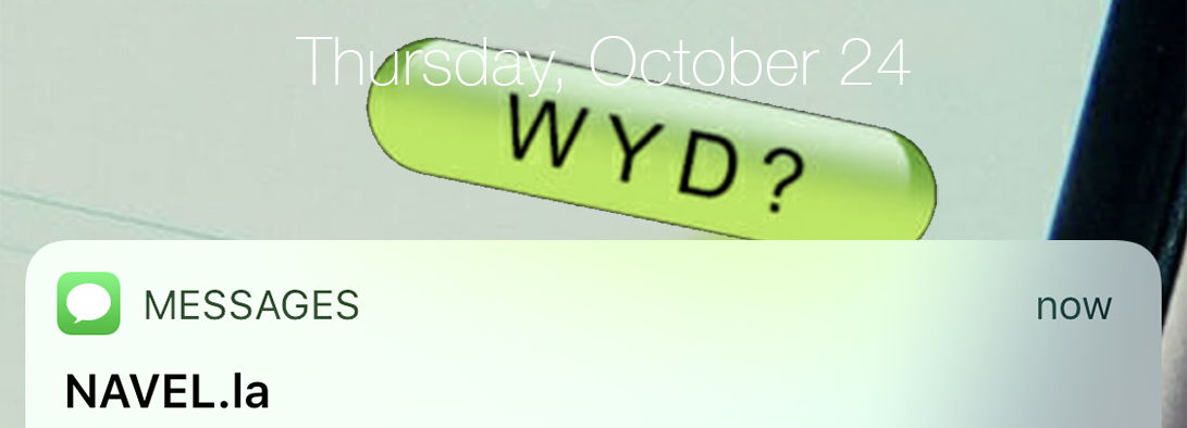 This Thursday, October 24, join us for WYD?(What’re You Doing?), an intimate and informal monthly gathering where members of the NAVEL community come together to present, test, perform, share, screen and talk about their work, thoughts and current research topics.