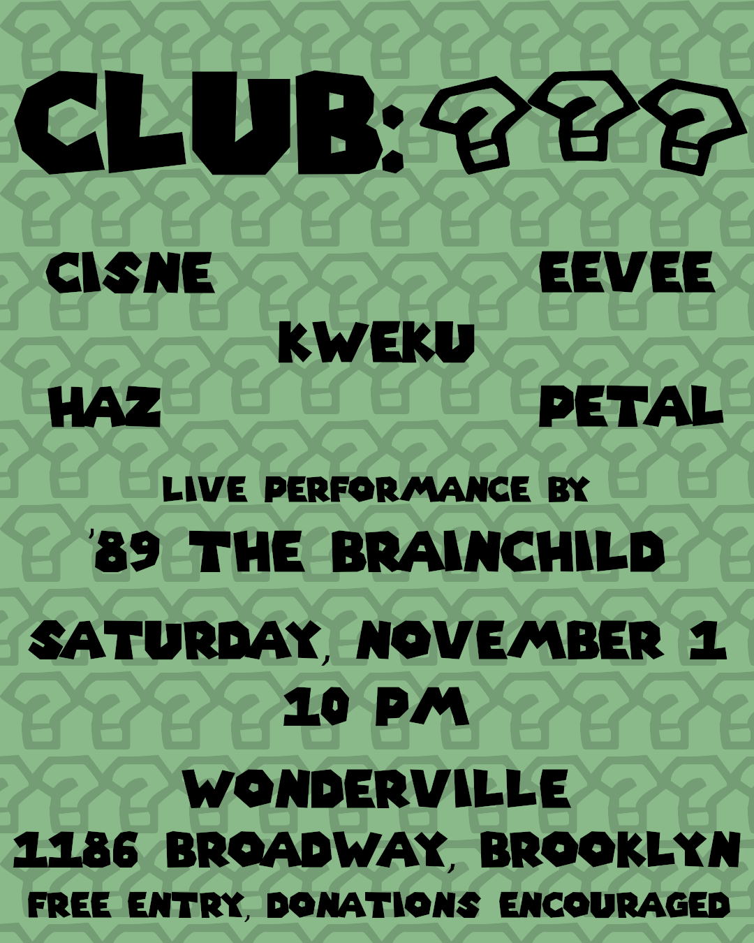 Club: ??? returns to Wonderville with a truly anything goes lineup of DJs that keep you guessing while dancing, and a rapper who’ll have you laughing as you bounce with him. This action packed open-format night has got you covered with a wide array of dance music and a live performance from Brooklyn’s favorite arcade club. Even though it’s November we know it’s still Halloweekend so if you have a costume you still need to get off, come as you are.