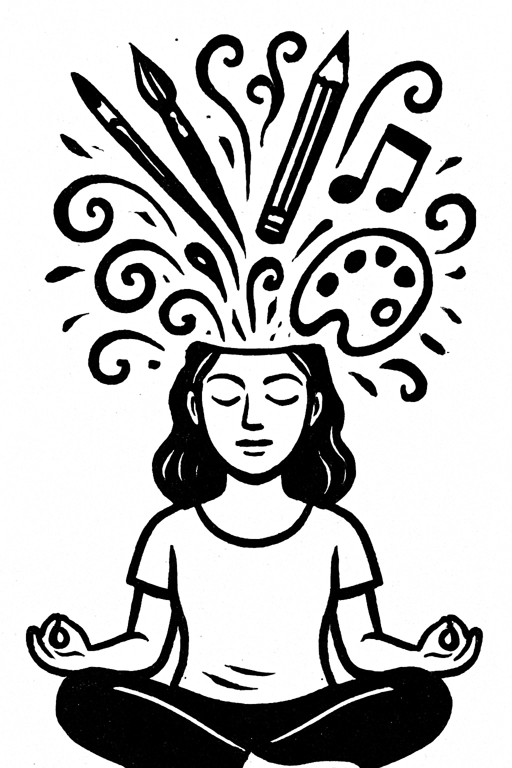 Thirty minutes of guided seated meditation followed by prompted art making done in silence, and then sharing of work. Designed to offer a more relaxed and authentic practice, with new insights and appreciation of the process of art making. We will provide basic pencils and paper, but beyond that please bring any supplies you'd like to use - drawing paper and drawing pencils, watercolors and brushes, etc. No art experience needed!