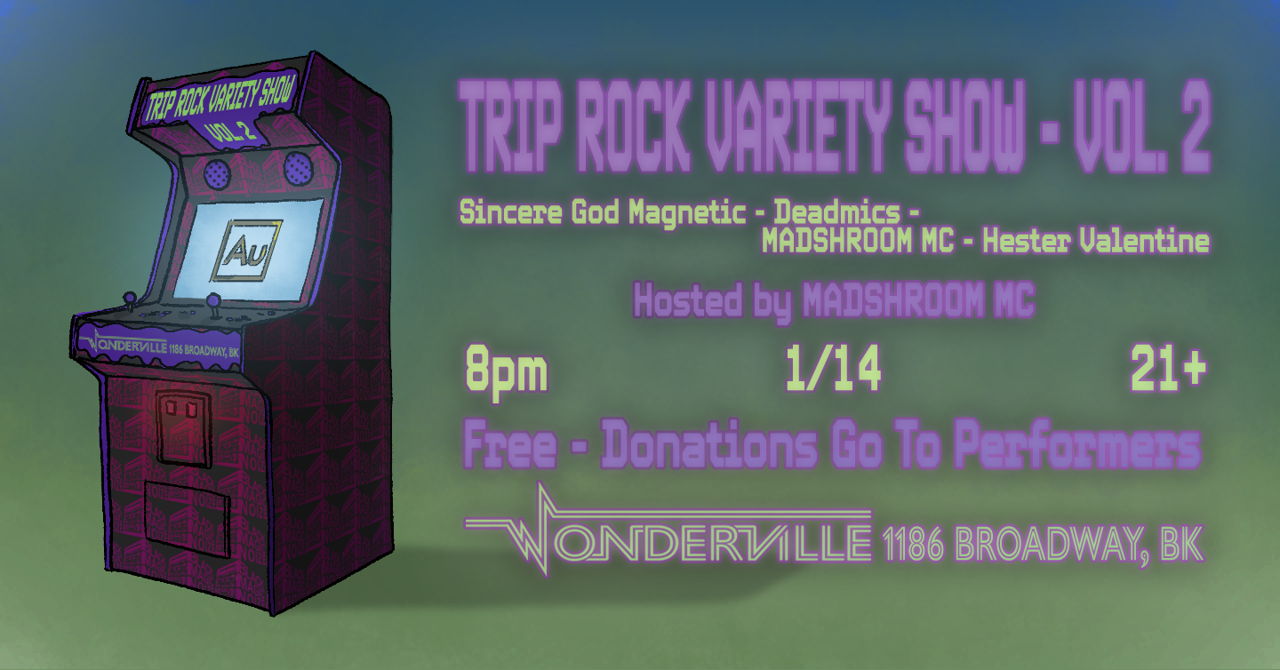 Get ready for Trip Rock Variety Show Vol. 2 at Wonderville! On Tuesday, January 14th, join us for a night of eclectic performances featuring:
