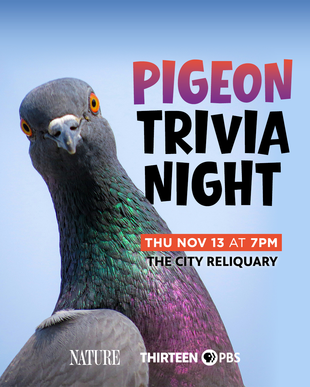 On November 13 at 7pm, we fill our crops and celebrate these rock doves’ television debut.