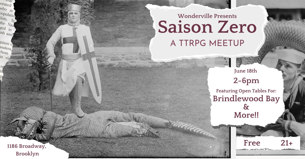 Hello Lovely people! Looking to jump into the wide world of TTRPGs like D&D, but maybe a little less crunchy? Looking to meet fellow nerds who are into role play (of the tabletop variety)? Come on down to Saison Zero, this month we’ll be holding open tables for games Brindle Bay and a few other surprises.
