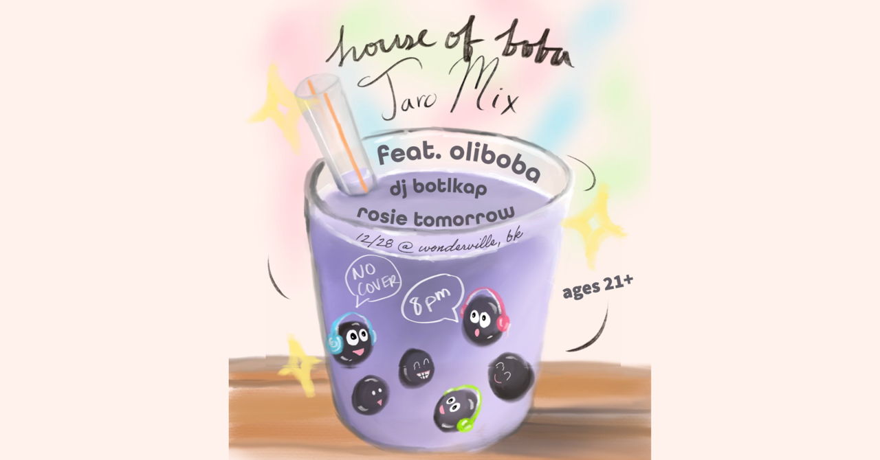 A night of funky house, liquid, and dnb provided by Rosie Tomorrow, DJ Botlkap and oliboba. This "Taro Mix" edition of House of Boba will be the NYC club debut and a celebration you won't want to miss! And who knows, a few lucky guests might get a sweet, bubbly surprise...