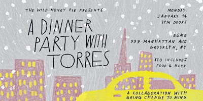 The Wild Honey Pie is thrilled to invite you to our first dinner party of 2019, featuring a performance from Torres, the creative alter-ego of Brooklyn-based singer-songwriter Mackenzie Scott. While her music is vulnerable, her voice exudes confidence over heart-pounding, lush, electro-pop beats. Throughout her critically acclaimed album, Three Futures, she sings of her own struggles to control her mind and body as she explores desire, lust, love, emotional connection and spirituality. She will now be joining us for a stripped down performance and an evening of food and drinks at Esme in Brooklyn. Concerned you may not be able to eat what we serve? We can handle all allergies!