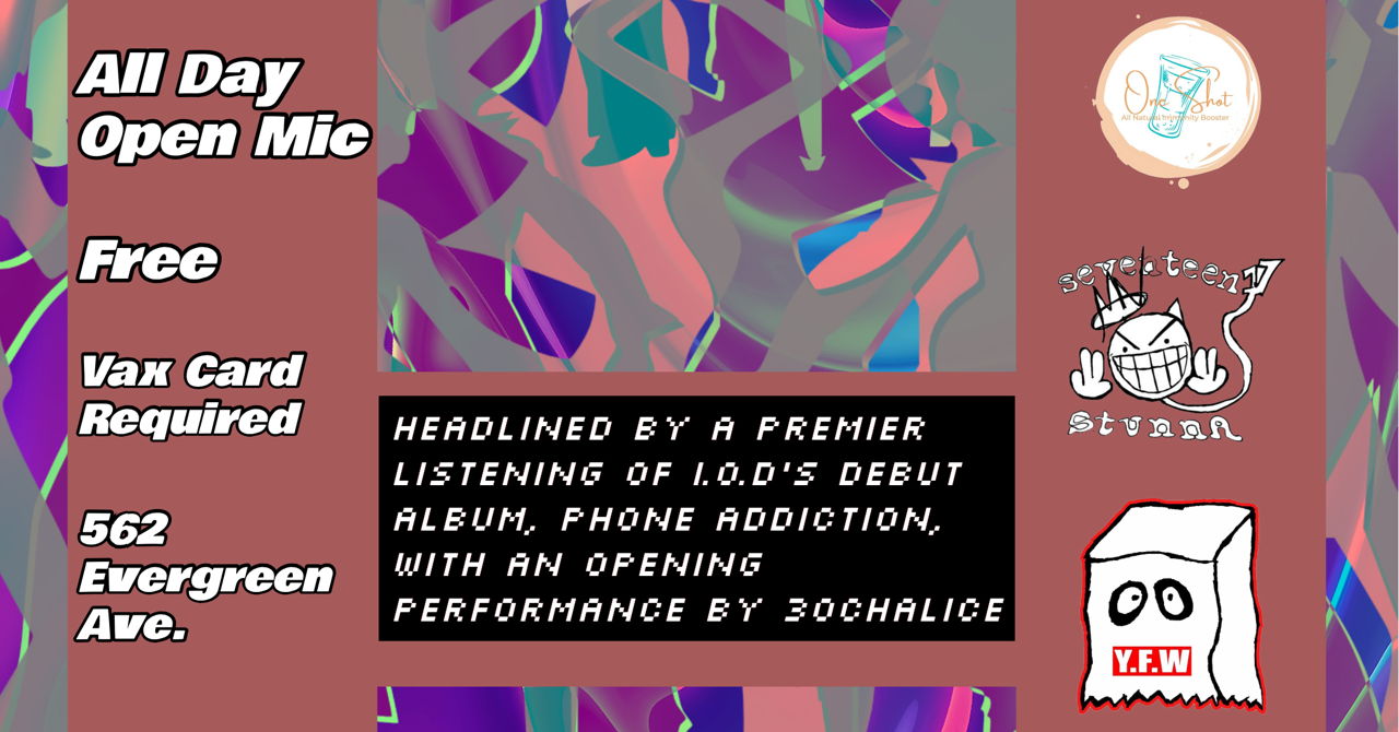 The night will be headlined by a premier listening of I.O.D.'s debut album, Phone Addiction, with an opening performance by 30CHALICE.