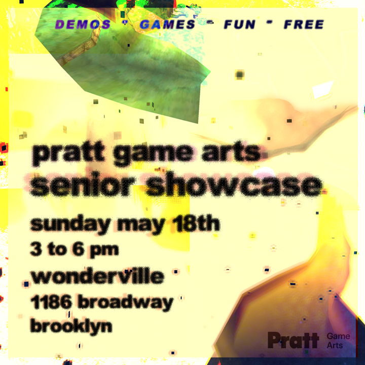 Join us in celebrating the senior projects of the very first graduating class from Pratt’s new Game Arts program! Come play your new favorite procedurally generated alien ecosystem , train heist against the gods, out of work Taoist simulator, horror puberty platformer, fishy fighter and much much more.