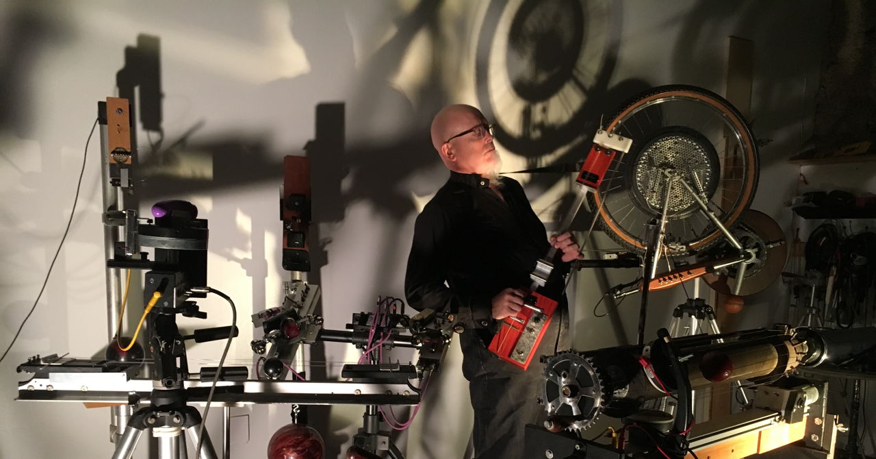 Sound Mechanic Neil Feather has been creating radical and unusual musical instruments since 1970 and is increasingly known outside of Baltimore as one of the most original musical thinkers of his day. His instruments each embody uniquely clever acoustic and engineering principles, and are visually arresting. The music he plays on the instruments is equally original, embodying new principles and resulting in a nearly alien idiom of music.