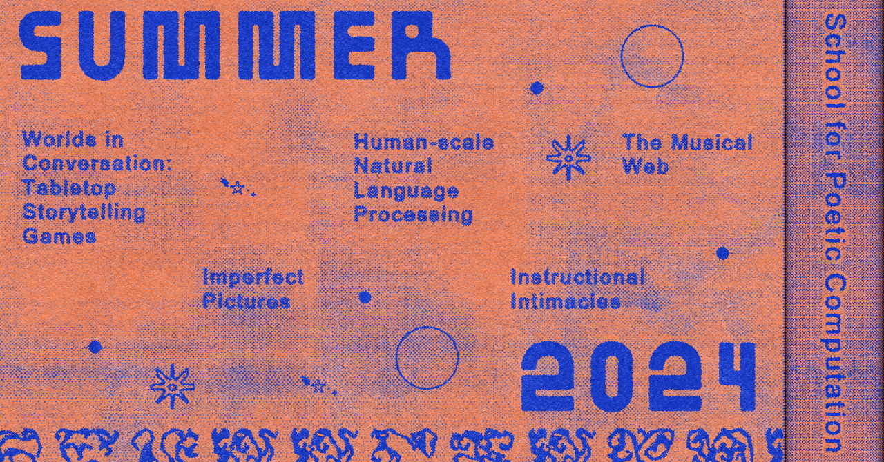 The School for Poetic Computation would like to welcome the participants of the current season in our Orientation. Learn about the history of SFPC, our Community Agreements, and meet your fellow classmates alongside peers outside of your class. All new and returning participants are invited to join. Orientation is mandatory, one-day only, and takes place in-person and online. Light refreshments will be provided for those joining in-person; bring your own snacks and beverages if logging in online.