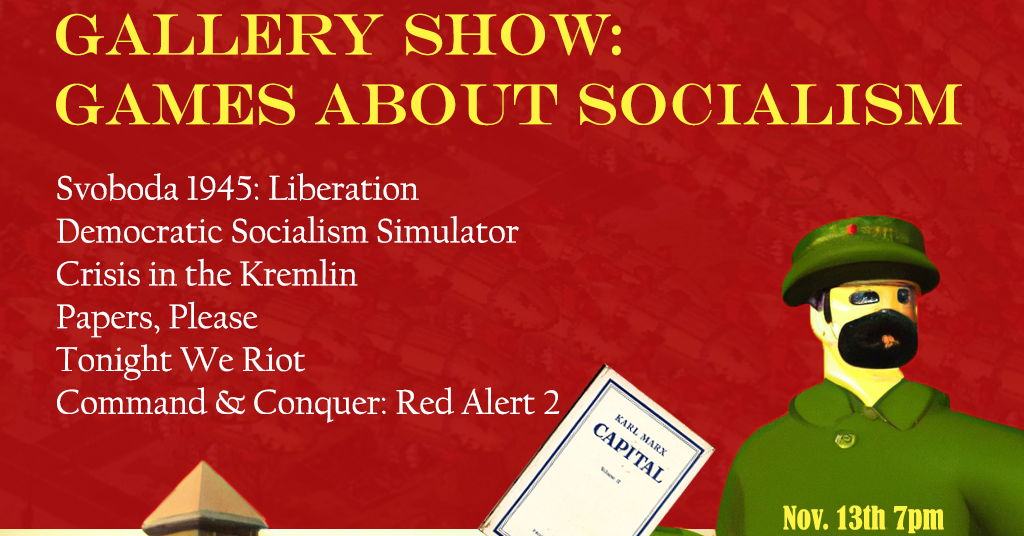 ‘Socialism’ carries a plurality of meanings in today’s political sphere, and videogames reflect that plurality. To capture the various ways in which socialism is depicted, this gallery show presents a flight of six videogames, each of which offers a unique perspective. Some of these games serve as vehicles of history and culture; some prescribe strategy and action for today and tomorrow; others, renouncing seriousness all together, transform flags and manifestos into playgrounds of comedic possibilities.