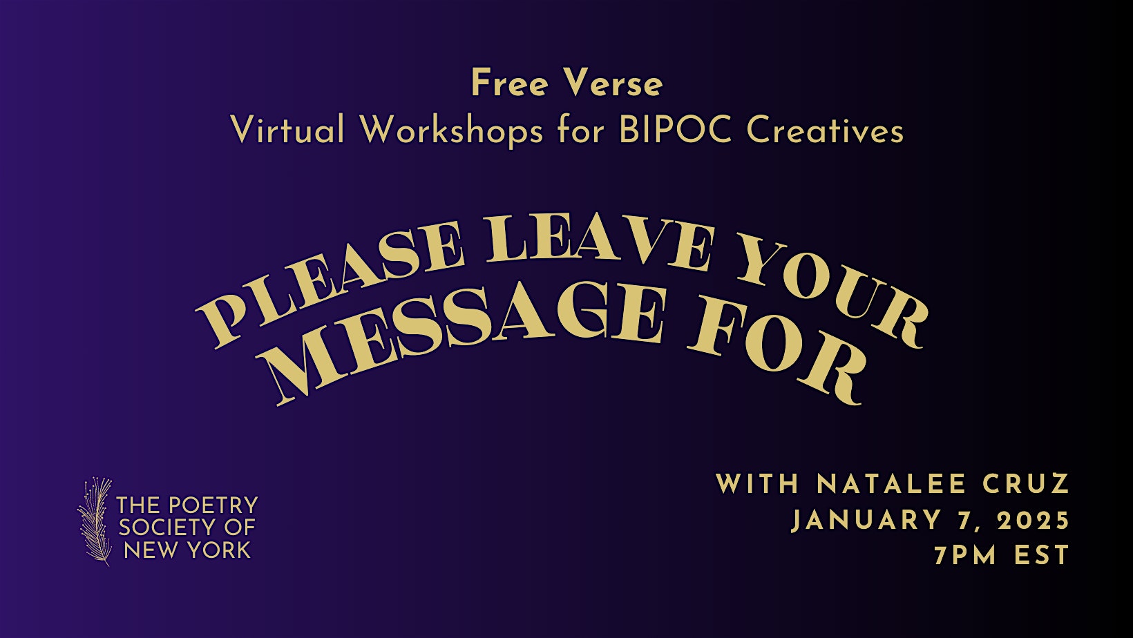 About the instructor: Natalee Cruz is a poet, fiction writer, and fifth-grade teacher. She earned an MFA from The New School in both poetry and fiction. Natalee finds joy exploring the intersections of art, technology, and that which is beyond description.