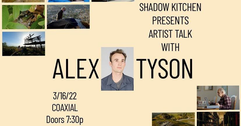 For this month’s Shadow Kitchen we will dive into an exploration of documentary with Alex Tyson, watching excerpts of his work and furthering this exploration in an “artist talk” (of sorts).