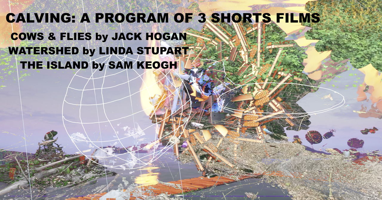Each video seeks to gain critical purchase on some of the effects and contradictions of climate collapse as they reach toward their respective themes of mapping, ecology and survival. Calving refers to the birth of a calf by a cow, or the process of the creation of an iceberg when a large chunk of ice splits off from an ice shelf or glacier.