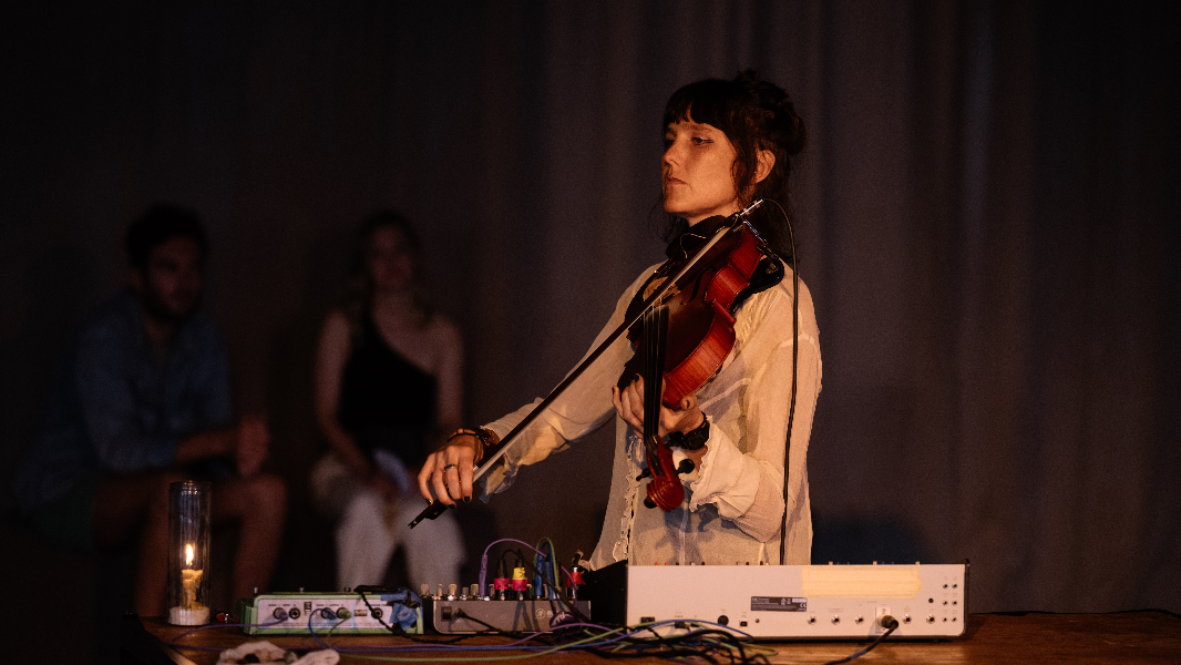 Whitney Johnson uses sound to explore relationships between bodies and minds. She composes, performs, records, and installs multi-channel sound from the viola, sine waves, Max/MSP, organ, synthesizers, vocalization, tape looping, and field recording. Her latest recordings, Hav and Stena (2024, Drag City) adopt alter egos to approach sonic material from two sides, following the cult of Hermaphroditus through Cyprus and Greece and her own symbolic and biological ancestry in Sweden. Recent performance-installations have considered the effects of sound on the body. FIAT (2023, Forecast Platform Berlin), The Tuning of the Elements (2023, Renaissance Society of the University of Chicago), Huizkol (2020, Lampo), and Fundamental 256 Hz (2019, Longform Editions) each consider the possibility of brainwave entrainment, an alternative healing technique using binaural beats to induce relaxed or energized mental states. In tandem with her sound practice, she received her doctorate in the sociology of sound from the University of Chicago in 2018 and completed a postdoctoral research fellowship on sound and technology in the Centre for Gender Research at Uppsala University in Sweden in 2022. She began as Assistant Professor of Sound Practices at the School of the Art Institute of Chicago in August 2024.
