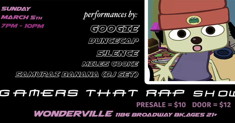 Come chill with some gamers who rap, or rappers who game? Overwatch obliterator GOOGIE, Pokemon master S!LENCE, Bloodborne bladesmith MILES COOKE, Doomslayer DUNCECAP, and epic gamer Samurai Banana all take the stage to give you a show you won't forget!