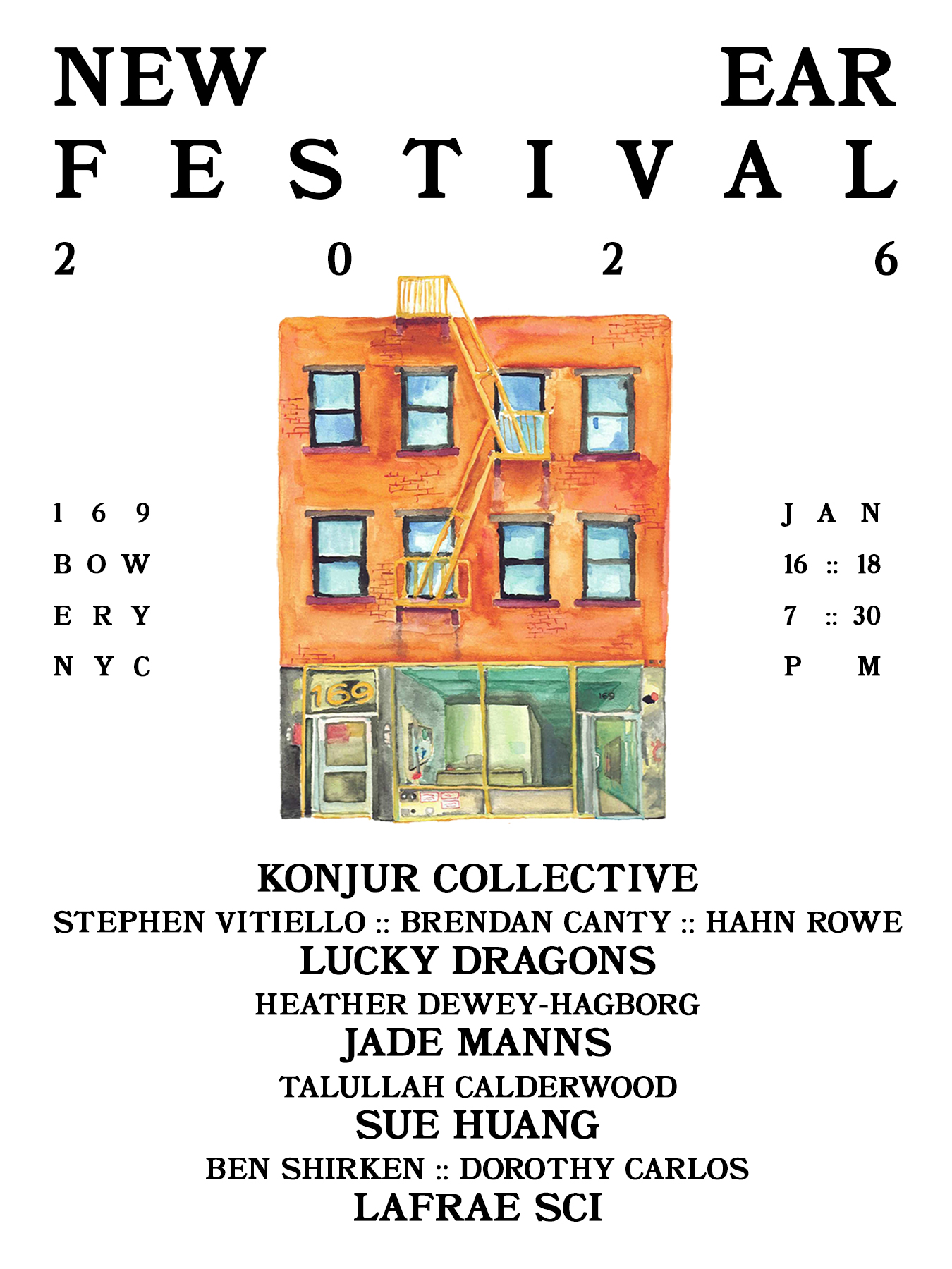 The annual New Ear Festival fulfills one of New Ear Inc.’s core missions—to help restore creative, experimental spirit on the ground floor level of downtown Manhattan. The festival showcases time-based art in all its forms—from sound installations and video screenings to storytelling and physical movement. Each evening will be live-streamed via Wave Farm / WGXC-90.7 FM.
