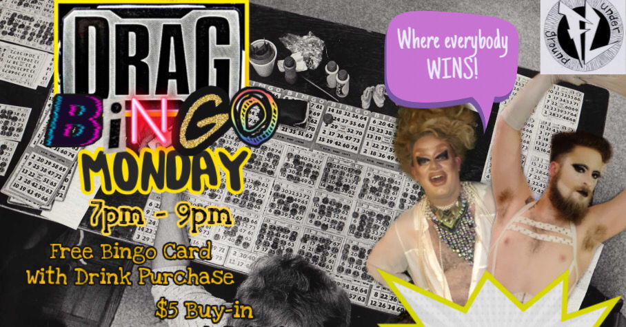 Drag Bingo every Monday, 7pm- 9pmFree bingo card with drink purchase