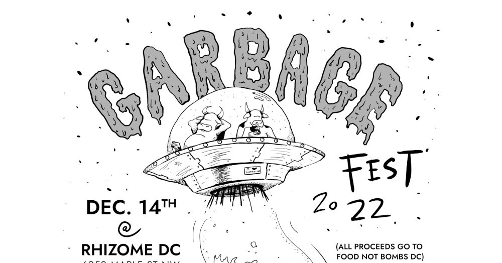 Garbagefest is Food Not Bombs DC's annual benefit show, a celebration of punk, community, and the dumpster. Food Not Bombs DC is a mutual aid group which serves the encampments in downtown Washington, DC on a weekly basis since its founding in 2013. We take food which would otherwise go to waste, prepare it, and share it, to provide delicious vegan meals at these encampments. Food Not Bombs stands for eliminating hunger, by ending the use of physical force which allows hunger to persist. Globally, Food Not Bombs chapters exist all over the world as a decentralized network.