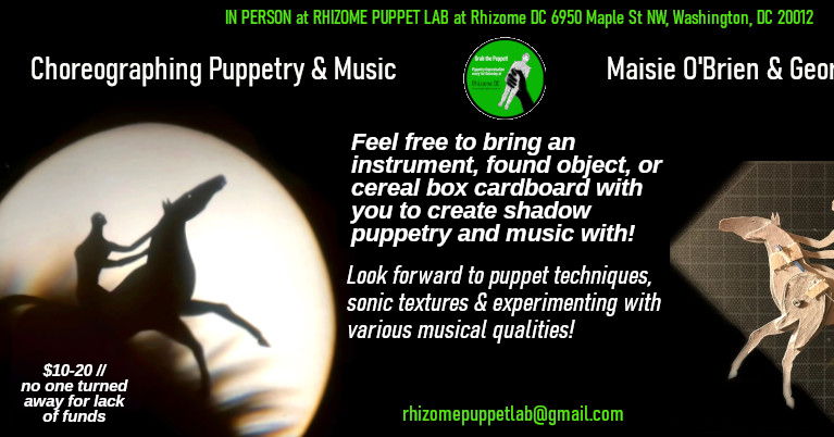 For this month's Puppet Lab, we are pleased to welcome guest facilitators Maisie O'Brien and Georgia Beatty for a workshop on choreographing puppetry and music, previewing some of their methods used in devising their collaborative show SPIRIT-RIDER & NIGHT-HEART, which they will perform at 1:30pm the same afternoon. This session is for musicians as much as it is for puppeteers, and can accommodate curious individuals from all experience levels.
