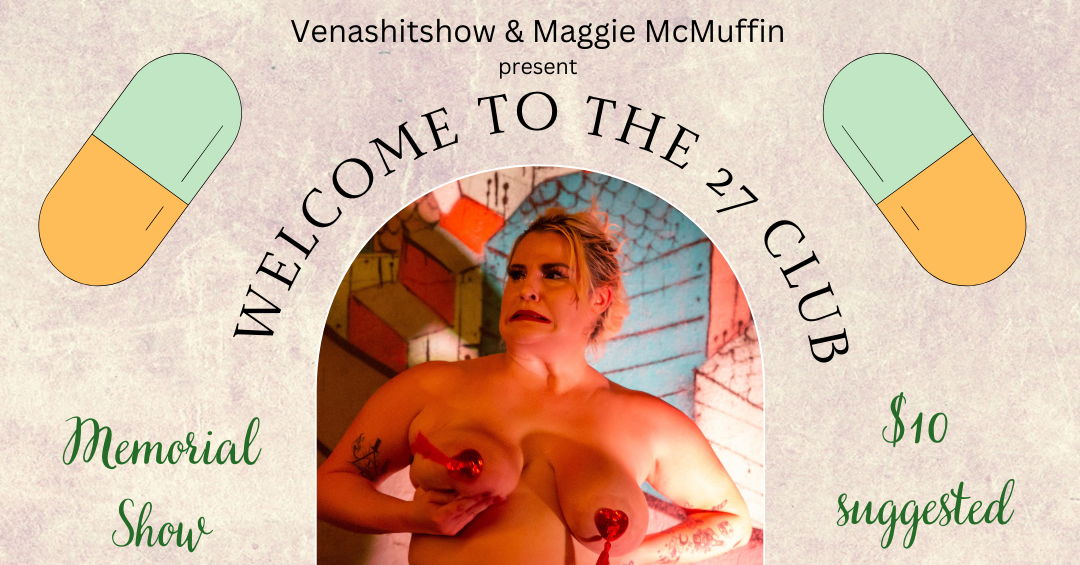 Local party girl and noise ordinance violation Venatrix is turning 27 and we are celebrating her in the traditional manner: by throwing a funeral. Despite all odds, she made it to that mythical age and while we can't say she'll make it to 28 we can say that this will be a party for the ages! Venatrix's loved ones will be paying tribute to her through burlesque, sideshow, drag, poetry, and more! All door sales and tips will go towards her favorite charity: The Innocence Project.