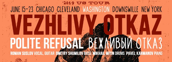Vezhlivy Otkaz, which means “polite refusal” in English, is one of the most original and erratic rock bands in Russia. It was formed in 1985 with a then-popular reggae/ska blend. Since then, they have gone through numerous stylistic changes, flirting with everything from free jazz to Russian folk. Their sound, however, has always been unique and immediately recognizable. Roman Suslov’s rhythmic guitar work and unusual high-pitched vocals gives VO’s music a precisely constructed, crystal-clear sound that is completely devoid of any of the extra noise so typical of rock-n-roll. The sound is so well organized that sounds almost academic.