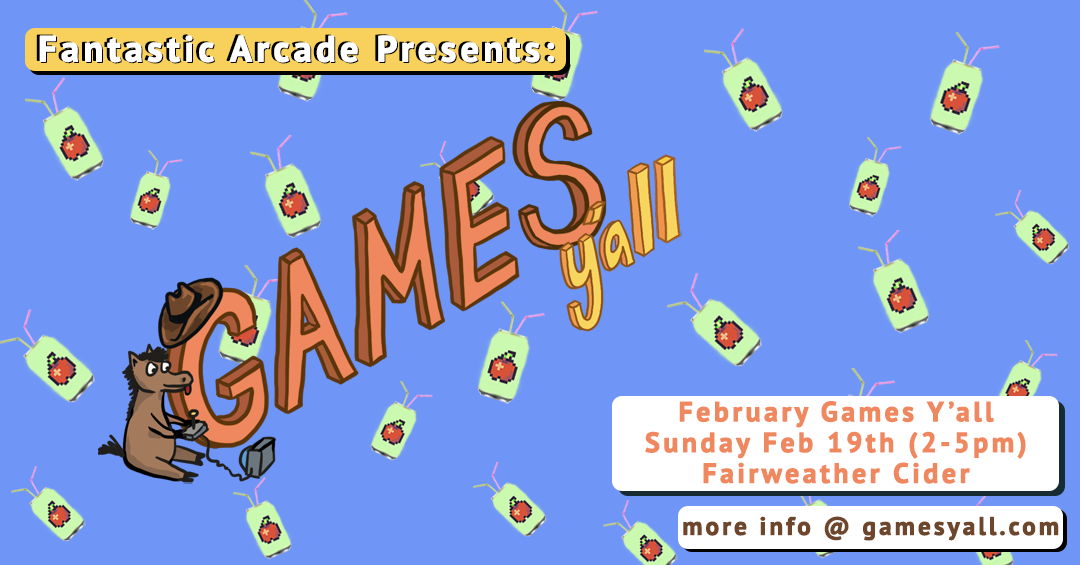 Games Y’all is a meetup presented by Fantastic Arcade & The Museum of Human Achievement, held every month at venues around Austin for indie devs, digital artists, and games fans.