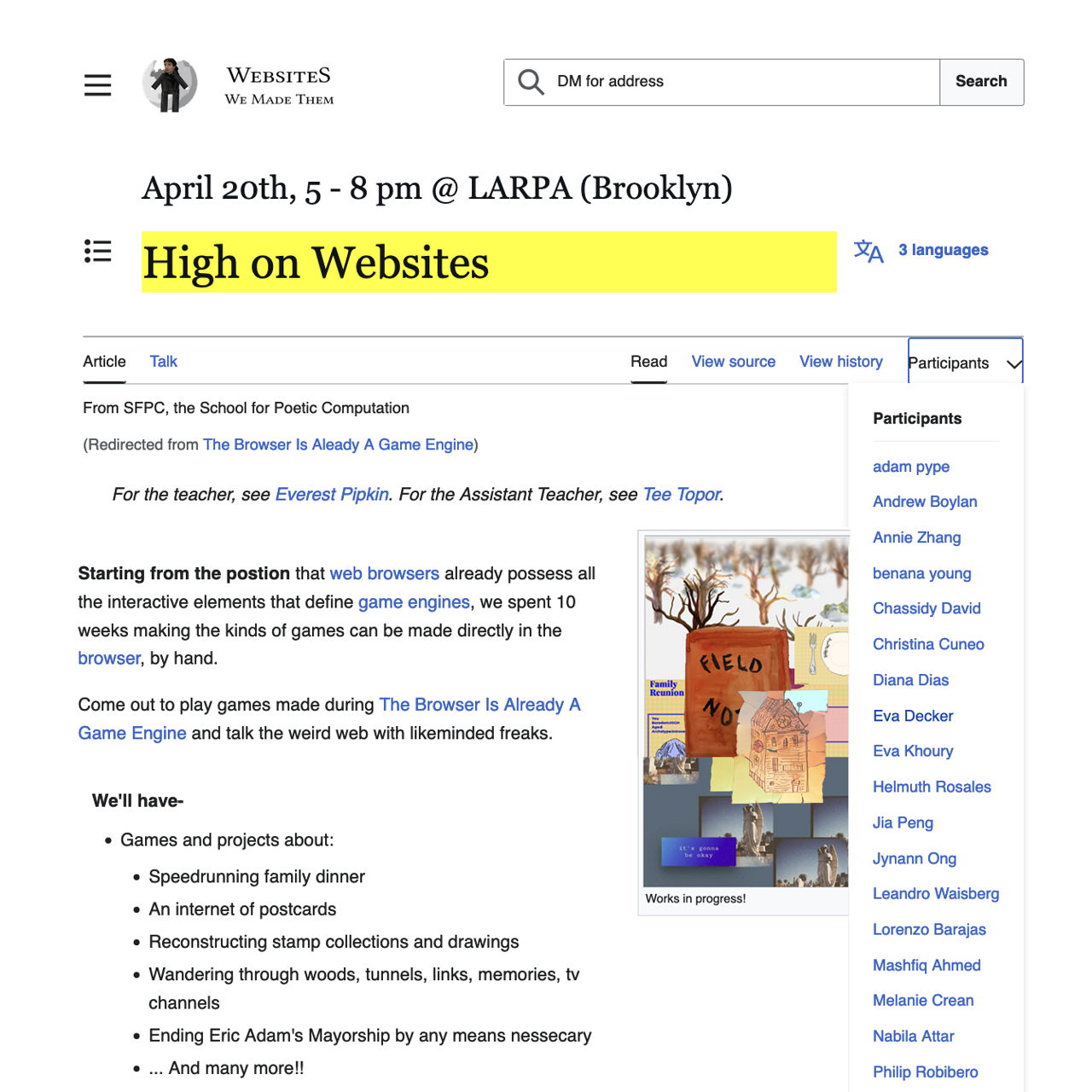 Starting from the position that web browsers already possess all the interactive elements that define game engines, we spent 10 weeks making the kinds of games that can be made directly in the browser, by hand.