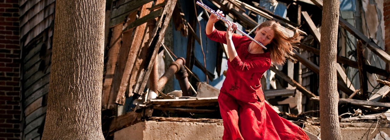 Flute and water converse, breathy timbres envelop pure tones, flute inhabits the world of grasshoppers, a film slowly drinks in the natural world. This is a multimedia solo flute concert that includes live flute performance, film, recorded nature sounds, and electronic manipulation of sound.