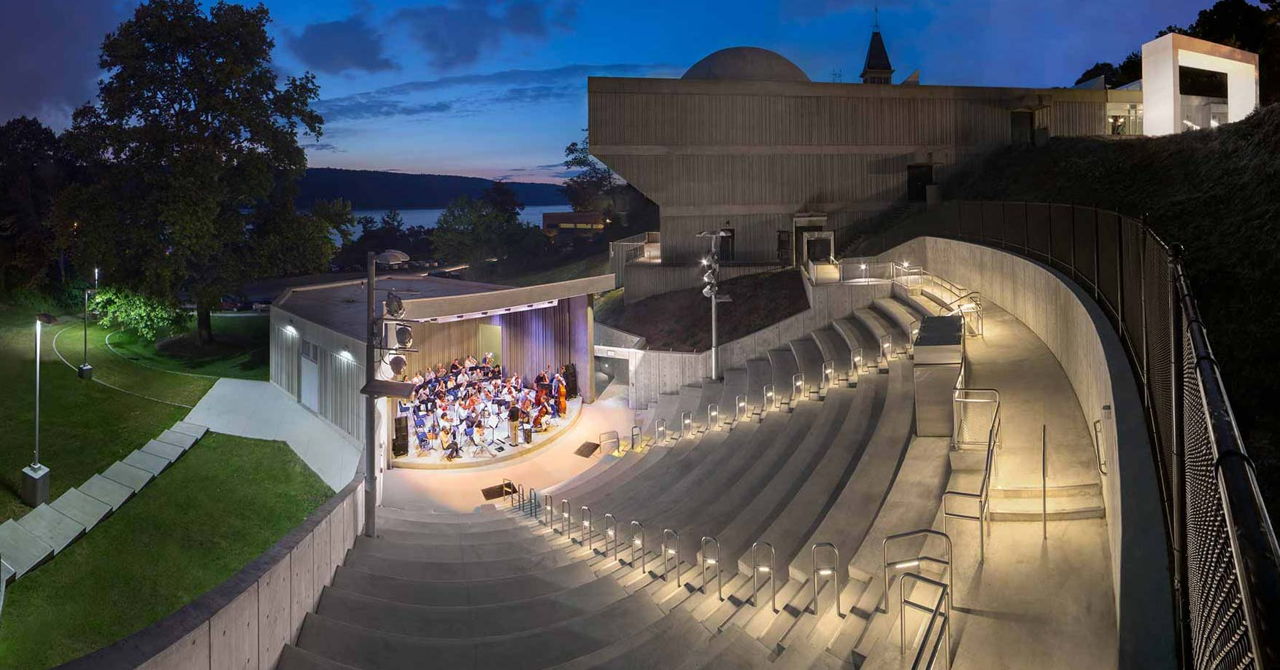 A summer performance at the stunning Hudson River Museum Amphitheater with views of the Hudson River and the Palisades.