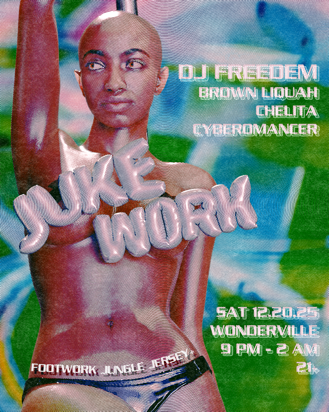 With interviews in Vogue and Dazed, DJ FREEDEM has long cemented themselves as a true New York icon and we're excited to have them headline the final JUKEWORK of the year. When they’re not tending to their plants, they’re crafting original tracks and edits that fuse jersey club, ballroom, and whatever else it takes to get your ass moving.