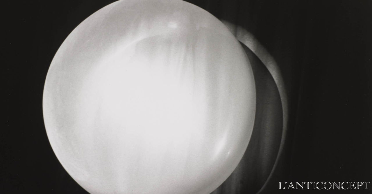 L’ANTICONCEPT is a sound film that alternates between black and white flickers. The film is projected on a helium-inflated balloon approximately two meters in diameter. A year after the film premiered at the Ciné-Club Avant-Garde 52, Debord declared L’ANTICONCEPT was “more offensive...than the images of Eisenstein, which frightened Europe for so long.” Although the Lettrists shared a proclivity for hyperbole, Debord’s statement accounts for Wolman’s incredible ability to leave behind all of cinema’s precepts and create a frightening alternative to the medium with his film.