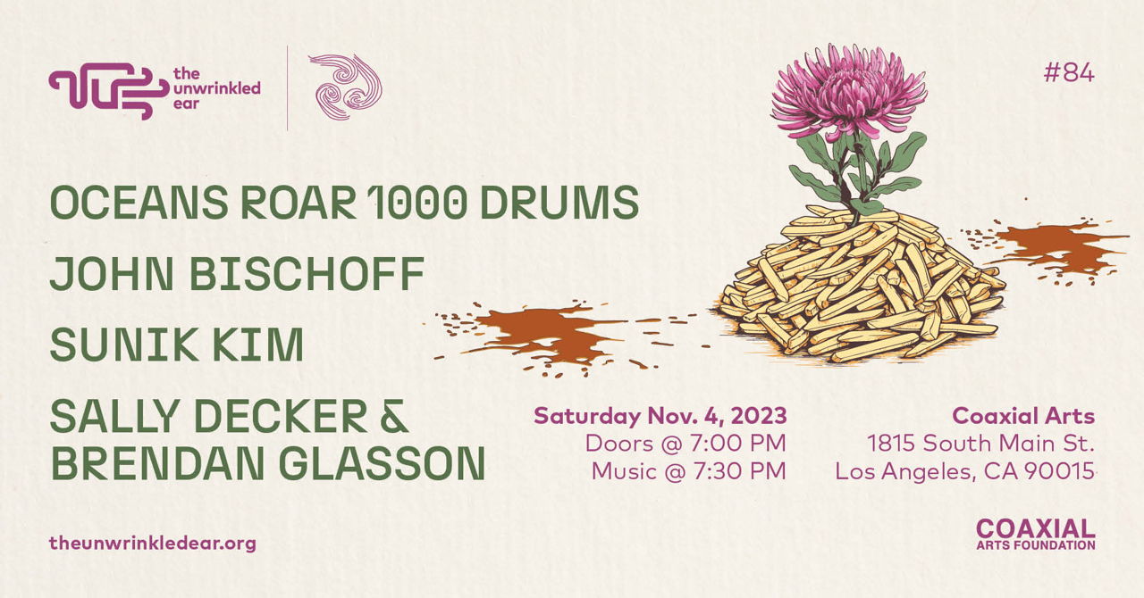 The international music group Oceans Roar 1000 Drums (with members in Berlin, NYC, and Norway), is touring for the first time in California to support a new release on the Sacred Realism label. Building on their musical language developed over the past 15 years of playing spontaneous music together, Todd Capp and Bryan Eubanks will work in an electro-acoustic formation of drums, saxtronics, and modular synthesizer for these concerts.