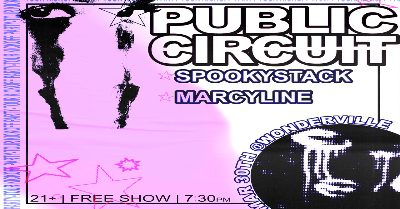 Single release show for Public Circuit accompanied by 2 other local postpunk bands; SpookyStack and Marcyline. Lots of synths, lots of noise. This show also acts as the tour kickoff for Public Circuit/SpookyStacks joint East Coast tour.