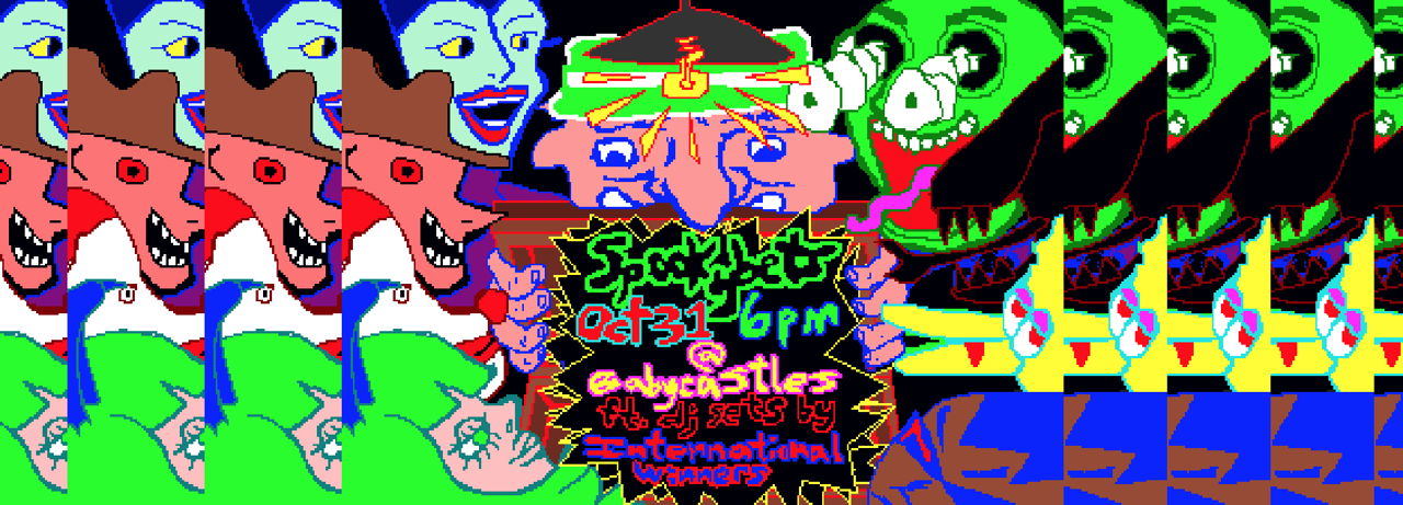This time we got DJ sets (via International Winners) and a costume contest! Dance and strut your outfit for a chance to win a drink or some swag, or just throw down your Babycastles Bux on spooky matchups like Pinhead vs Big Bird or The Green Goblin vs Garfield!