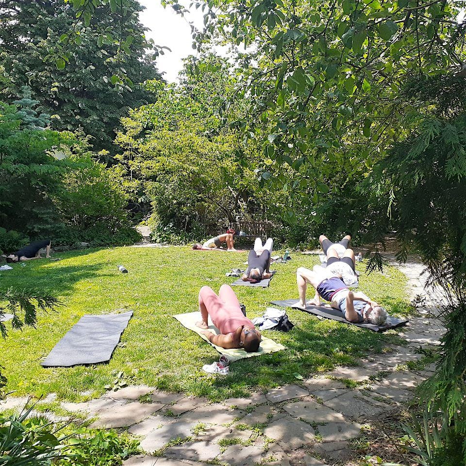 Free open-to-all yoga class in La Plaza Community Garden. Suggested donation $15.