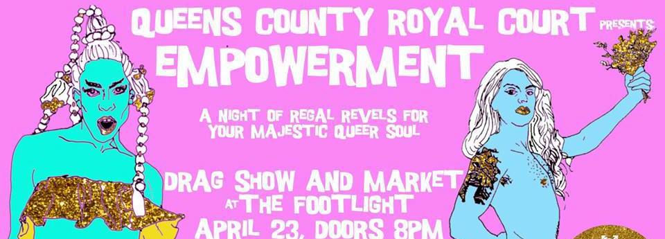 The Queens County Royal Court, may they live forever, is back in session with an EMPOWERMENT themed show, just ahead of Mayday. Those who joined us last time know, we want you to feel LOVED. We want you to feel SEXY. And we want you to feel your POWER. Join your Monarchs of Ceremony JUNIOR MINT and COMRADE BARBIE for a night of majestic debauchery and bedazzlement. We have drag shows, comedy, games with prizes, and a whole vendor market to show for your health and newest look. Come feel yourself with new friends and old!