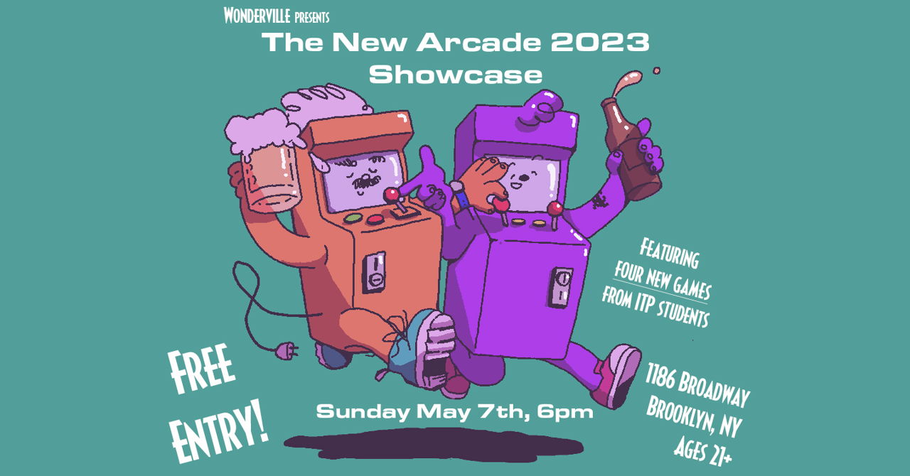 Come check out four brand-new arcade games made by students from NYU's ITP, gathered together at Wonderville for one day only! Play the cabinets, meet the creators, enjoy some tunes, and toast to the start of summer. Free entry!