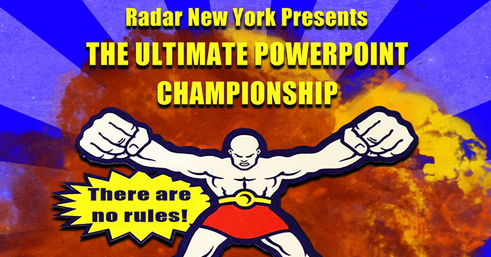 Comedians face off presenting PowerPoints they've never seen before. Join us for a one of a kind show that feels like a mashup between a Ted Talk and a roast battle. Hosted by Omry Hananya and Kyle Gillis (@radarnewyork)