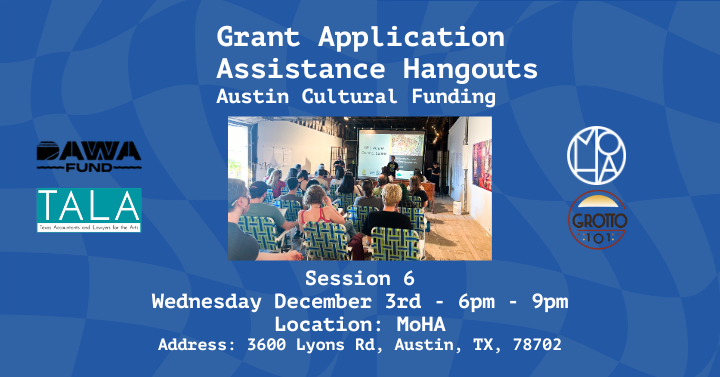 The Museum of Human Achievement in partnership with Texas Accountants and Lawyers for the Arts are hosting 7 Grant Application Assistance Hangouts for individuals or organizations seeking assistance with applying to the City of Austin Art, Culture, Music, and Entertainment (AACME) Funding Programs. Join us at our workshops where we will offer an overview of this year's application, 1:1 support, and a friendly environment to co-work with other community members on your applications.