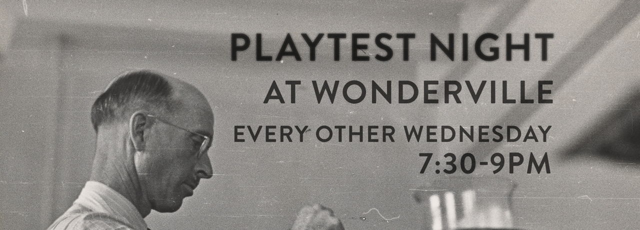 Playtest night is every other Wednesday at 7:30 at Wonderville